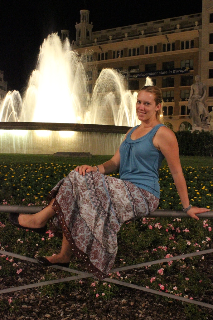 I dipped my feet in the water to try it out. The water was cold, but not too bad. It was surprisingly salty to the taste, more then I figured the sea to be. We wished we had taken swimsuits, as the water was very inviting. And un-expectantly we got our wish, just a little different then we wanted. While sitting at the waters edge, we were caught by a large wave. We got completely soaked as did our cameras and purses. Like I said, it reminded me very much of Hapuna and it's sudden large surges. We picked up and moved to a nearby bench to sort everything out. It was then that I realized that the sea had claimed my lens cover to my Canon. Bummers, but at least I can replace that fairly simply. We decided to return to the Somnio and get changed from our wet garments. By the time we got back and took showers, a nice nap was in order. We have figured Barcelona to be a late sleeper. It seems as everyone gets going around lunch time. So with a few hours sleep tucked under our belts, we headed out again. We went back down to the port and by that time it was popping. The street vendors were out with their wares, the lights danced and shimmered in the water. I had fun playing around with my camera trying to get different types of shots.